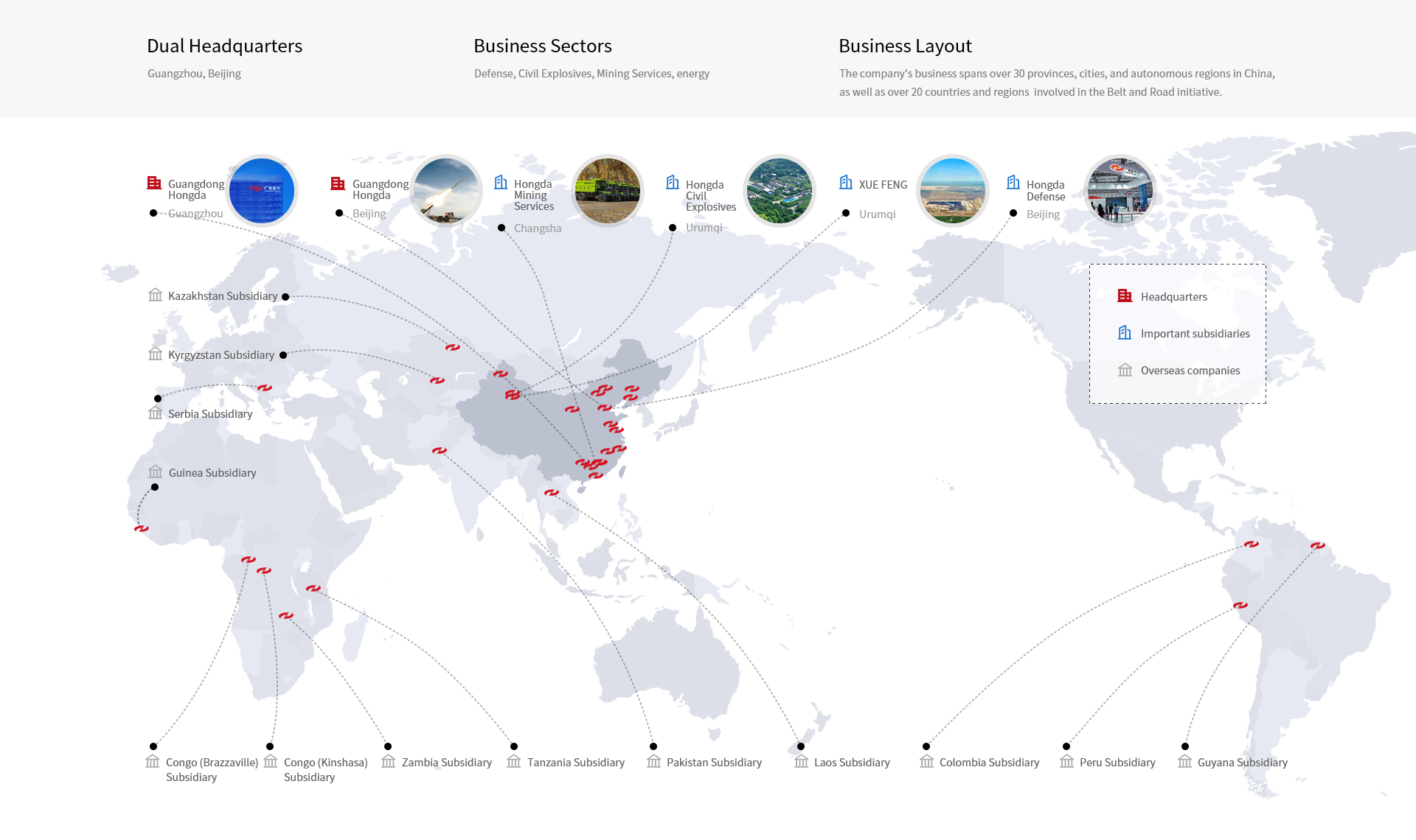 Guangdong Hongda Holding Group Co., Ltd., established in 1988, is a subsidiary of Guangdong Environmental Protection Group Co., Ltd., which is under the supervision of the State-owned Assets Supervision and Administration Commission of Guangdong Province. It is the first listed company in China providing integrated mining and civil explosive services.